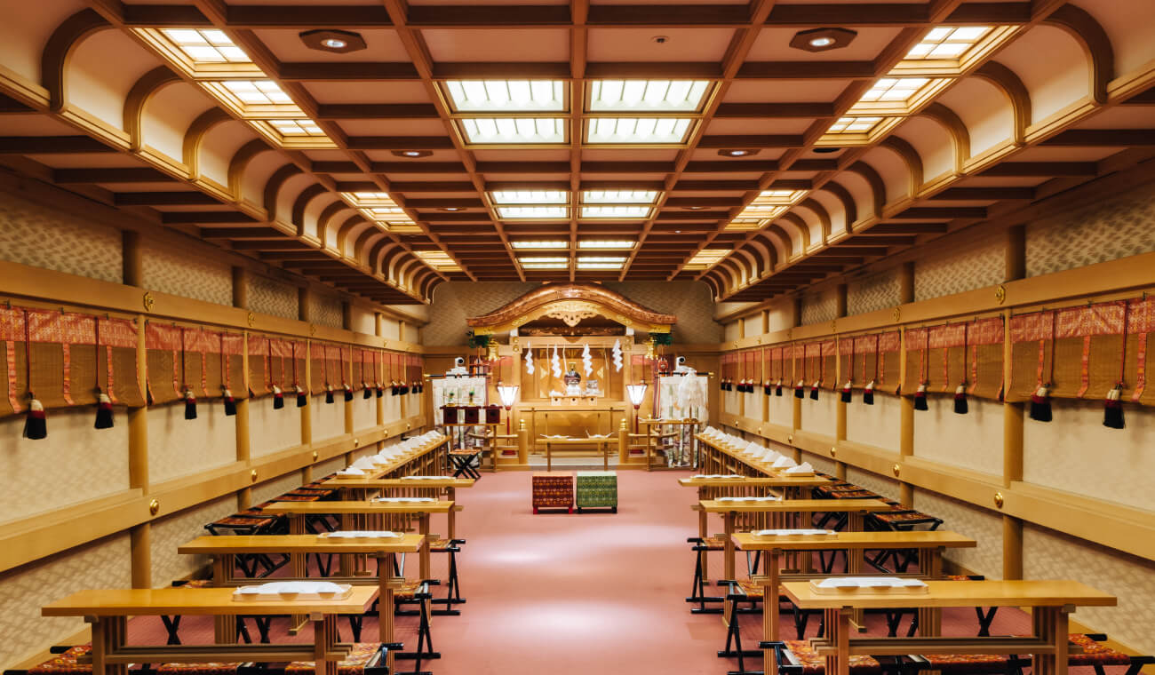 親身體驗日本文化的神前式婚禮。新人穿著日本傳統服飾,在莊嚴氣氛中舉行儀式。