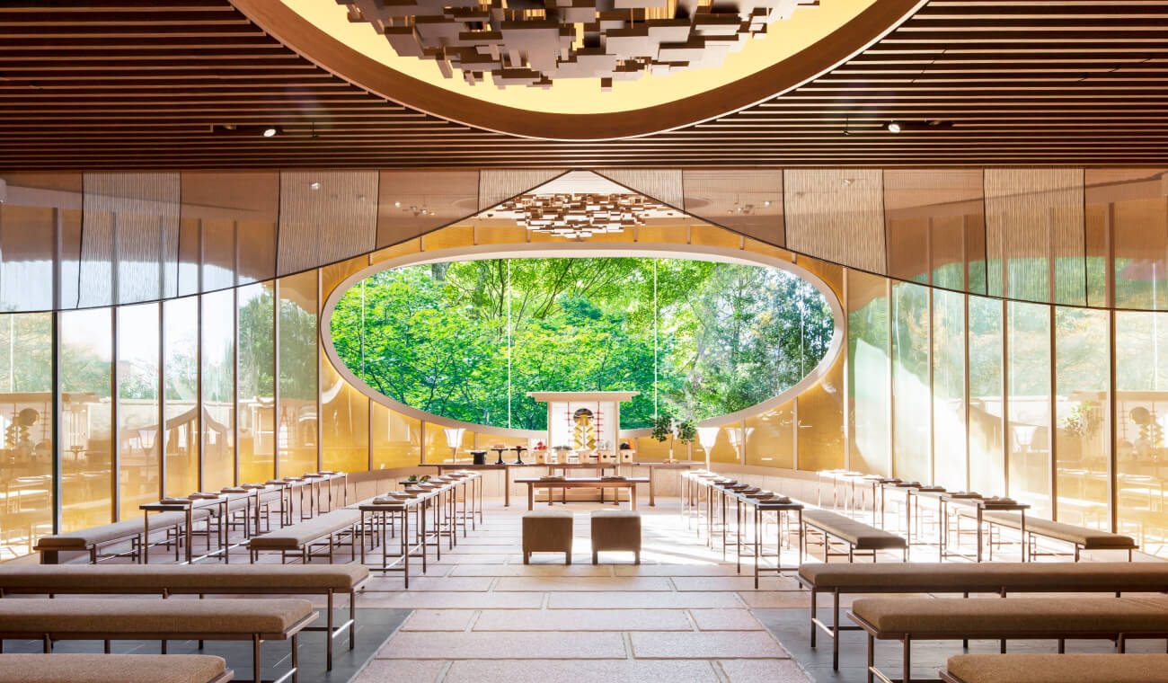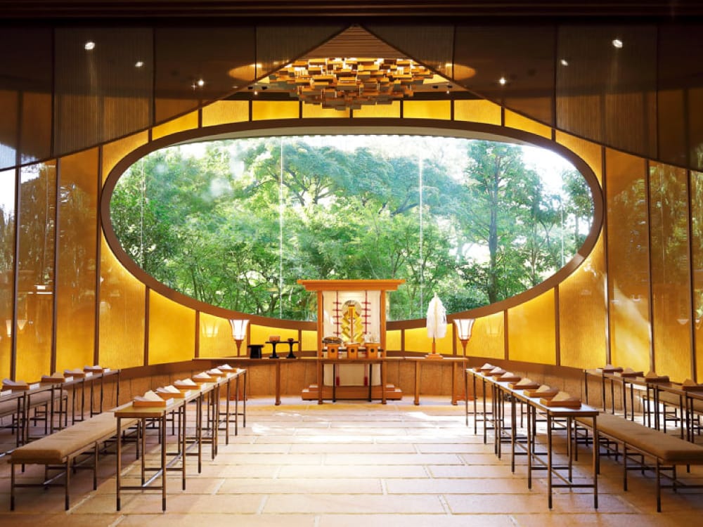 三座神殿奉祀的神明,是以庇佑結緣而聞名遐邇的出雲大社主神—大國主大神。從傳統風格神殿到與綠意融為一體的創新風格神殿,您可視需求從中挑選。