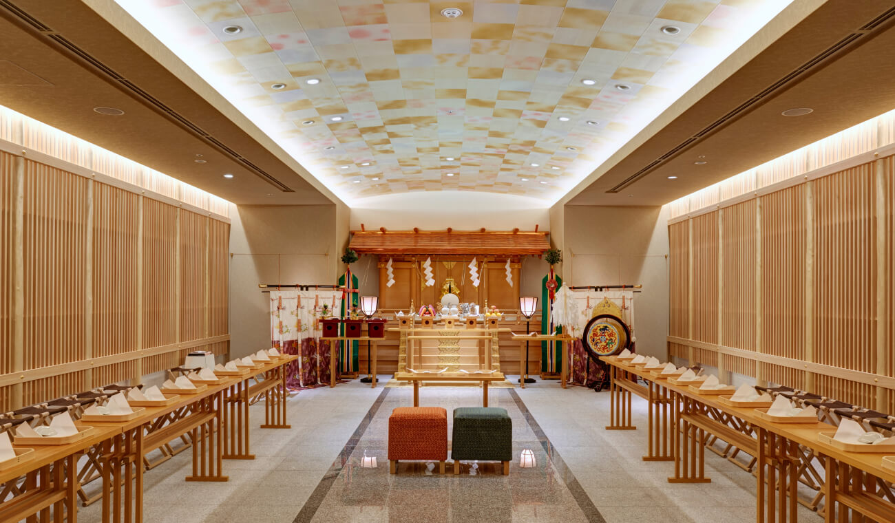 親身體驗日本文化的神前式婚禮。新人穿著日本傳統服飾,在莊嚴氣氛中舉行儀式。